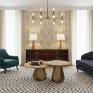 zlota komoda allcut z manufaktury mebli luksusowych gradLustro i komoda Allcut wykończone mosiężną blachą