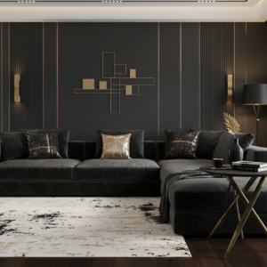 Nowoczesna komoda Clin Vitrine Grad DesignNowoczesna komoda czarno-złota Cline Vitrine