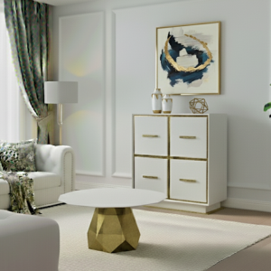 zlota komoda allcut z manufaktury mebli luksusowych gradLustro i komoda Allcut wykończone mosiężną blachą